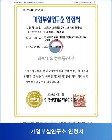 주소 : 경기 김포시 대곶면 대명항로205번길 30 제일기계공업(주)